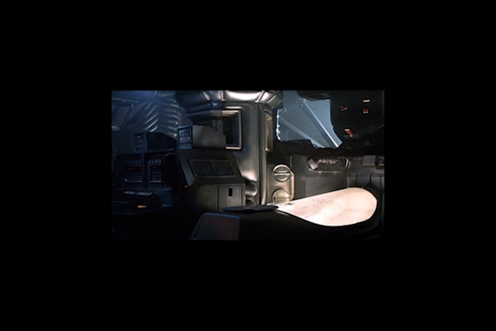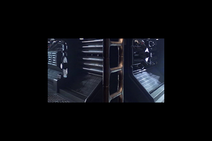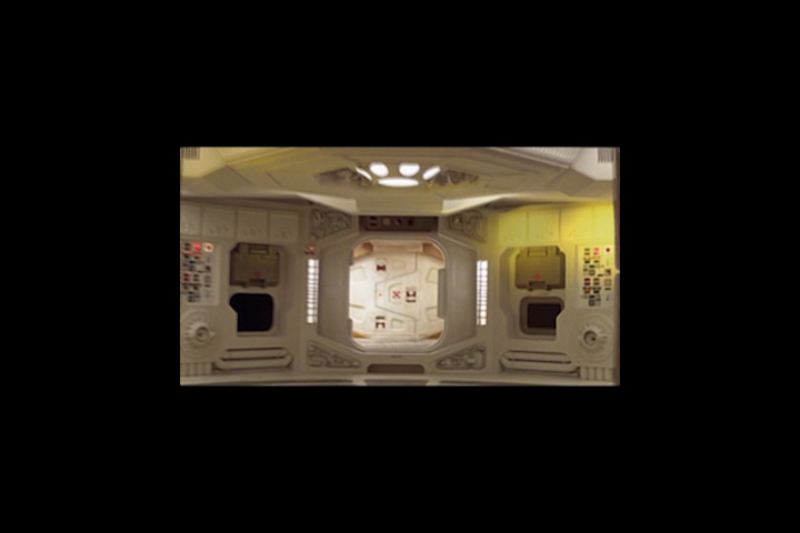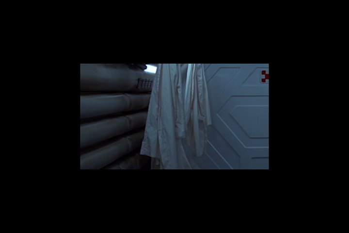 Other Noises, Other Rooms shows content removed versions of famous movies like George Romeros ‘Night of the living dead‘, Milos Forman‘s ‚One flew over the Coocko nest‘ or Ridley Scott‘s ‚Alien‘. By zooming scene by scene into the pictures, selecting just cutouts without actors, deleting all dialogues and music on the audio level, the focus of the movies changes to its background. The viewer is confronted only with the film set and its sounds. All what is left is the filming set with its noises. The cinematographic sceneries are detached by their narration and can be explored as an autonomous, new space.