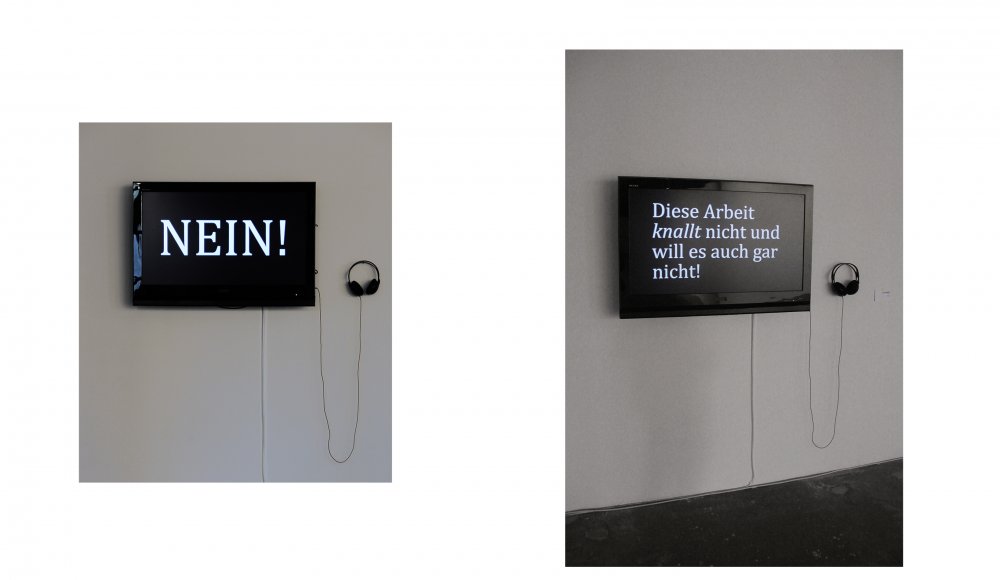 Unter den Klängen des Trauermarschs aus dem Ring der Nibelungen von Richard Wagner "spricht" ein Bildschirm in schwarz-weißen Texteinblendungen zum/zur Betrachter_in und thematisiert in einem pathetischen Dementi die möglichen Kritikpunkte, die denkbaren Zweifel an Konzept und Form der künstlerischen Arbeit selbst.