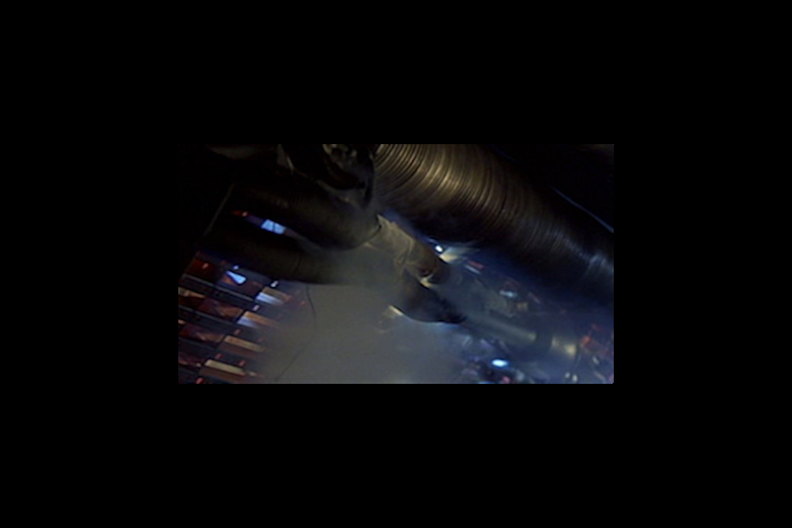 Other Noises, Other Rooms shows content removed versions of famous movies like George Romeros ‘Night of the living dead‘, Milos Forman‘s ‚One flew over the Coocko nest‘ or Ridley Scott‘s ‚Alien‘. By zooming scene by scene into the pictures, selecting just cutouts without actors, deleting all dialogues and music on the audio level, the focus of the movies changes to its background. The viewer is confronted only with the film set and its sounds. All what is left is the filming set with its noises. The cinematographic sceneries are detached by their narration and can be explored as an autonomous, new space.